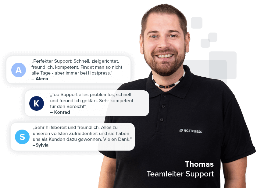 „Ich bin mit nun 8 Webseiten zu Hostpress gewechselt und bin vollkommen zufrieden. Geschwindigkeit: Der erste Hoster der wirklich seine Versprechen hält! Performance von 42 auf 99 gesteigert! Service: kostenloser Umzugsservice erleichtert den Wechsel enorm. Sehr netter Support mit persönlichen Ansprechpartnern und schneller Reaktion. Deutscher Anbieter was mir in Sinne der DSGVO wichtig ist und natürlich auch den Support vereinfacht”