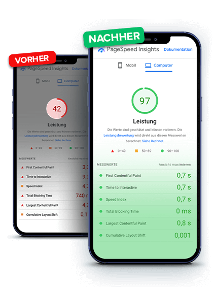 Power ist Trumpf – denn heutzutage zählt jede Sekunde. Und die Geschwindigkeit deiner Webseite ist ein grundlegender Baustein deines Erfolges im Internet. Wenn eine Seite nicht schnell genug lädt oder sogar überhaupt nicht erreichbar ist, kann das Vertrauen der Besucher empfindlich gestört werden. Weil wir das schon früh erkannt haben, zählen wir Performance von Anfang an zu unseren obersten Prioritäten und haben mit regelmäßigen internen Benchmarks die optimale Konfiguration im Hintergrund deiner Webseite ermittelt. Diese Erfahrung der letzten Jahre und der Vergleich mit dem Markt sind dafür verantwortlich, dass wir WordPress-Performance als unser Spezialgebiet verstehen und selbstbewusst von „Mehr Power für dein WordPress!“ reden. Mit unserem Stack erzielen wir regelmäßig drastische Verbesserungen der SEO-relevanten Core Web Vitals sowie höhere PageSpeed-Werte für unsere Neukunden.